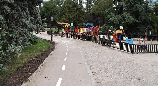 Itinerario Ciclista Situado Paralelo a M-30 en Parque Breogan-Parque de las Avenidas, Madrid.